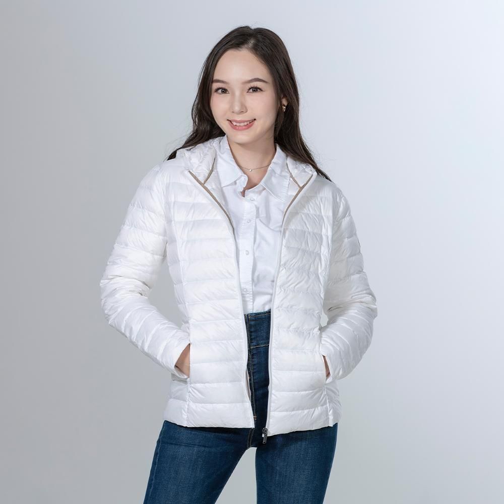 アイコニックなフード付きライトダウンは撥水性と防風性を持ち機能性に優れています。そのうえで体にフィットするラインはレディらしさがありタイムレスなアイテムです。
