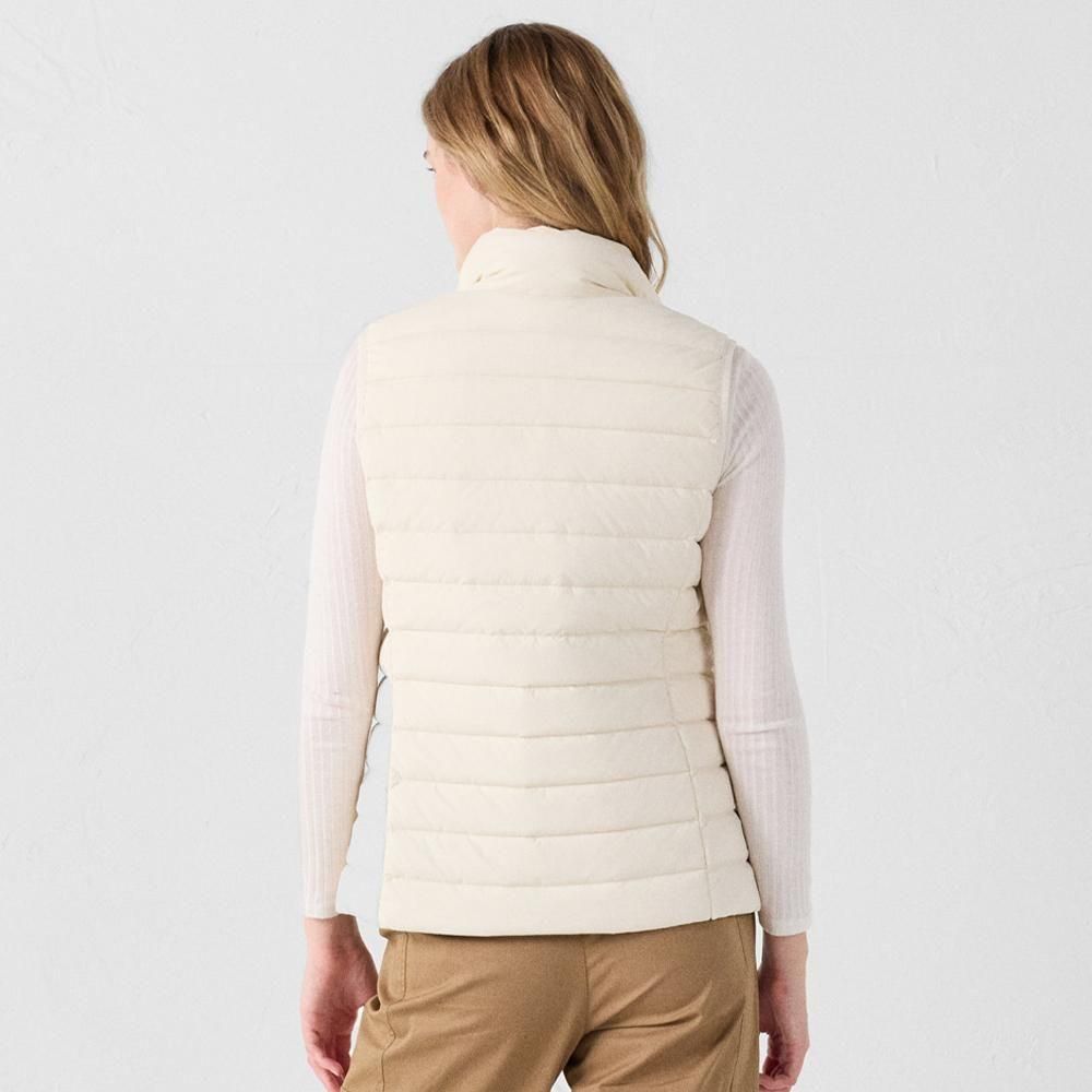 フードなしのダウンベスト「GRENADA」は、普段使いしやすい腰までの着丈です。