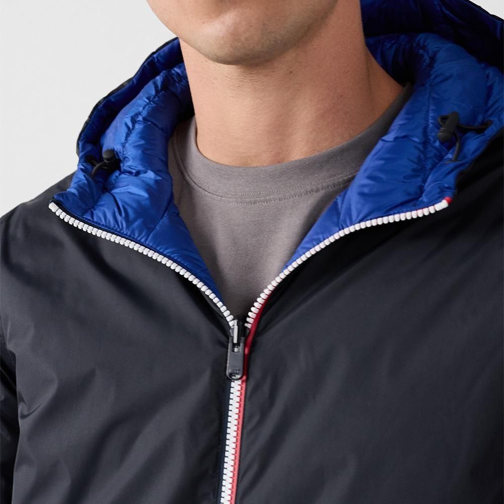 ナイロンの防水素材と、カジュアルなキルティングはリバーシブルで2WAYでご着用いただけます。