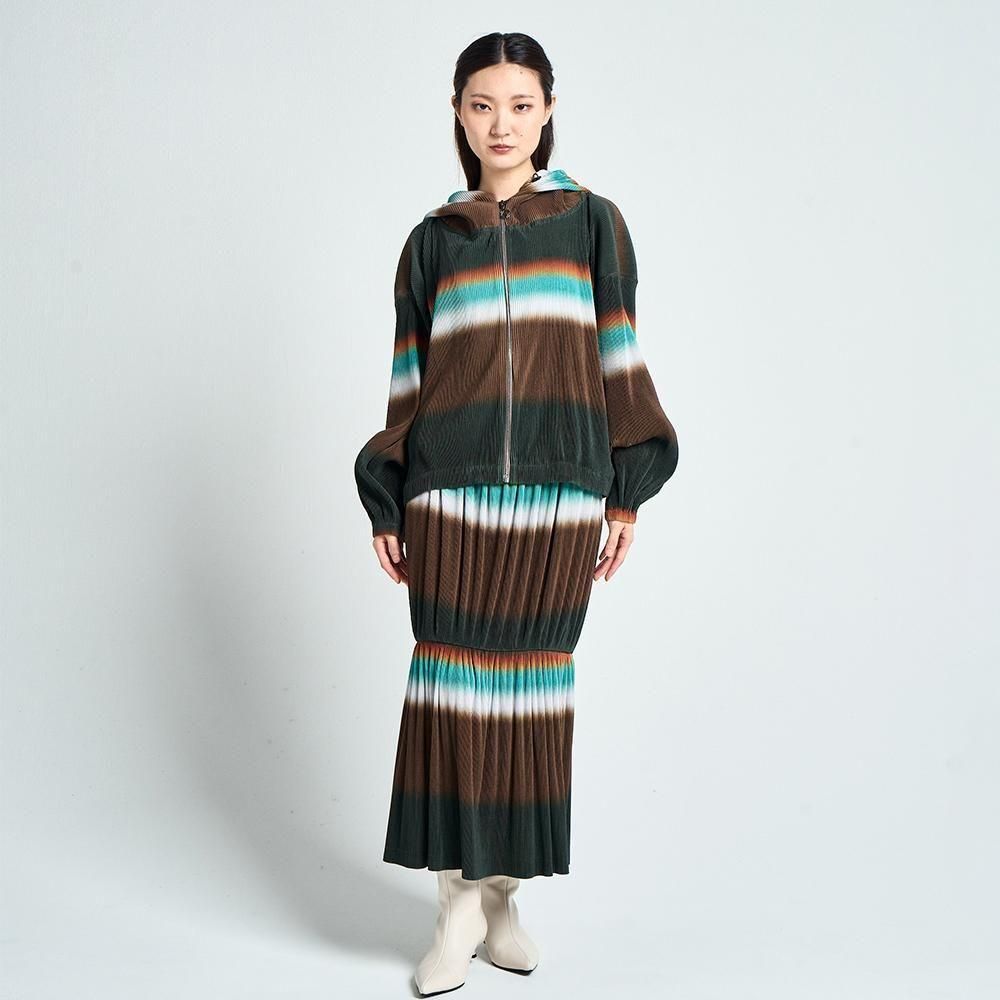 インクジェットプリントで鮮やかなグラデーションを表現したフーディー。