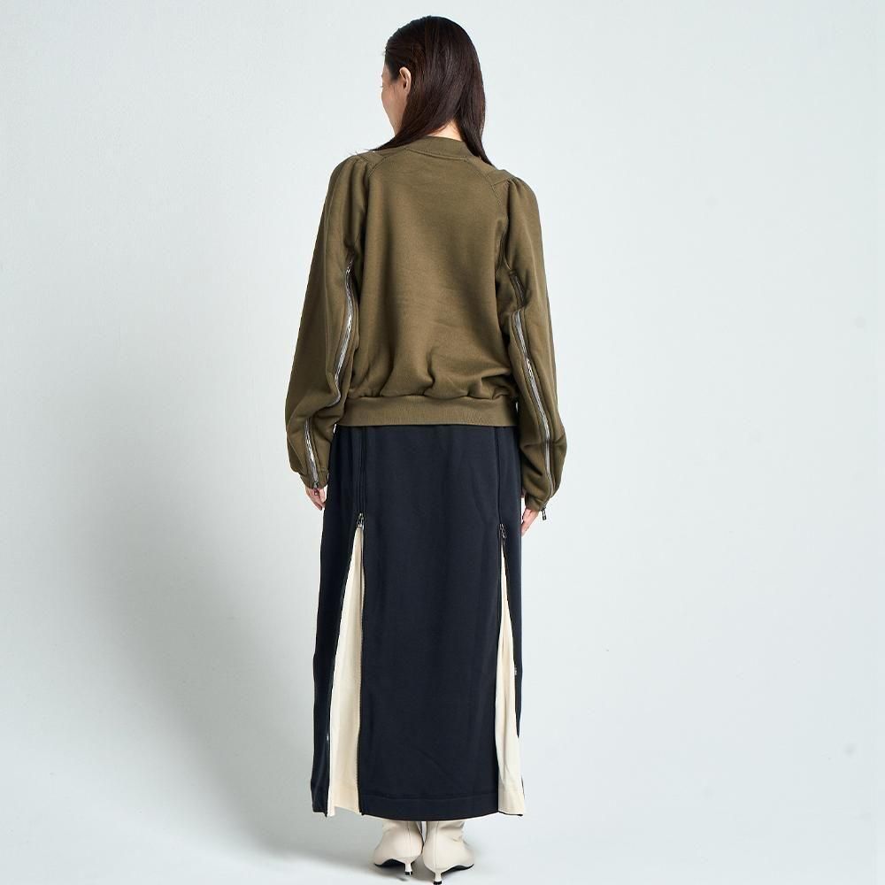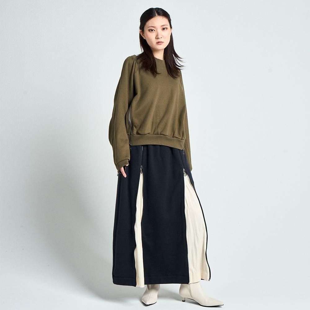 スリーブと裾にはZIPを施しており、開閉することで印象の変化を楽しめます。