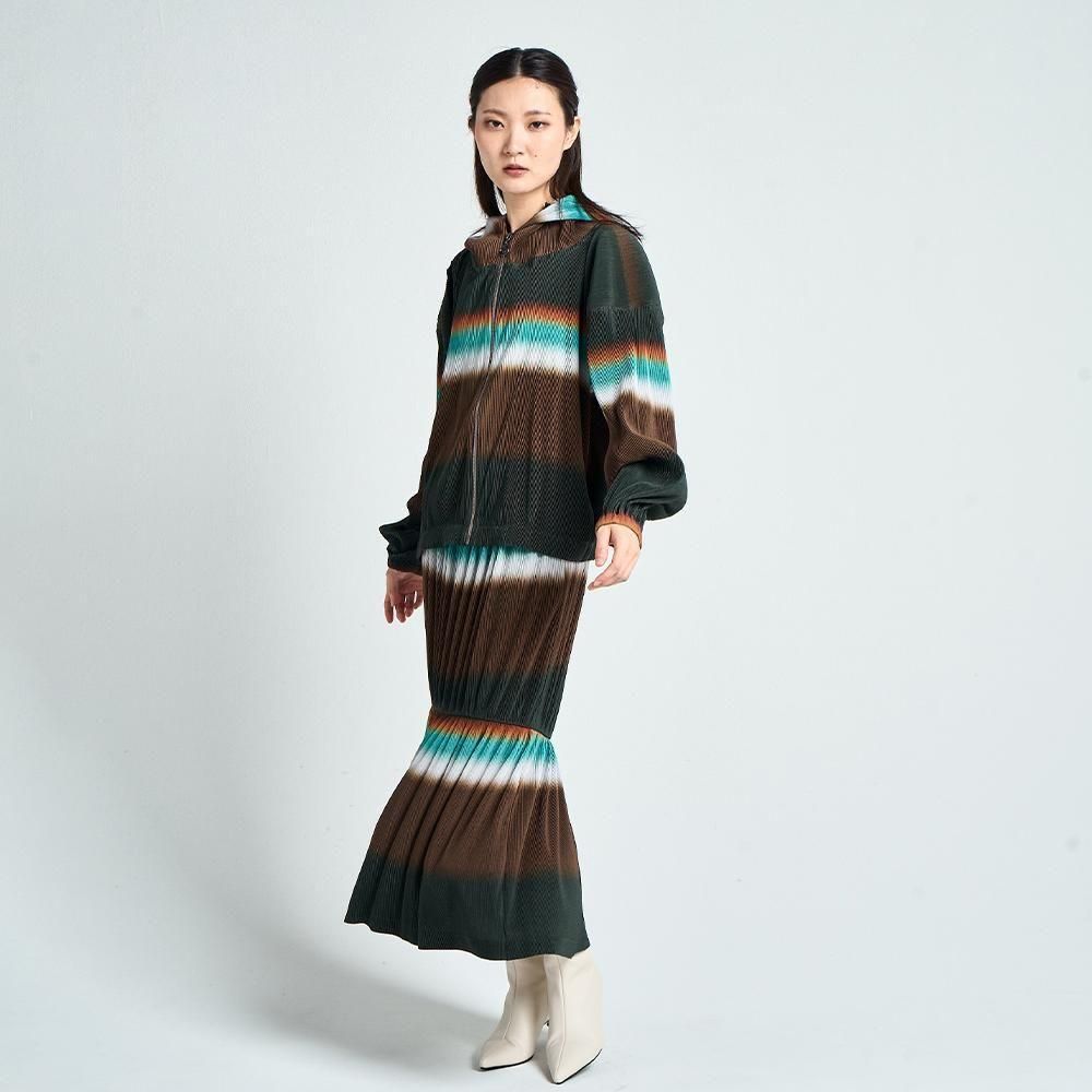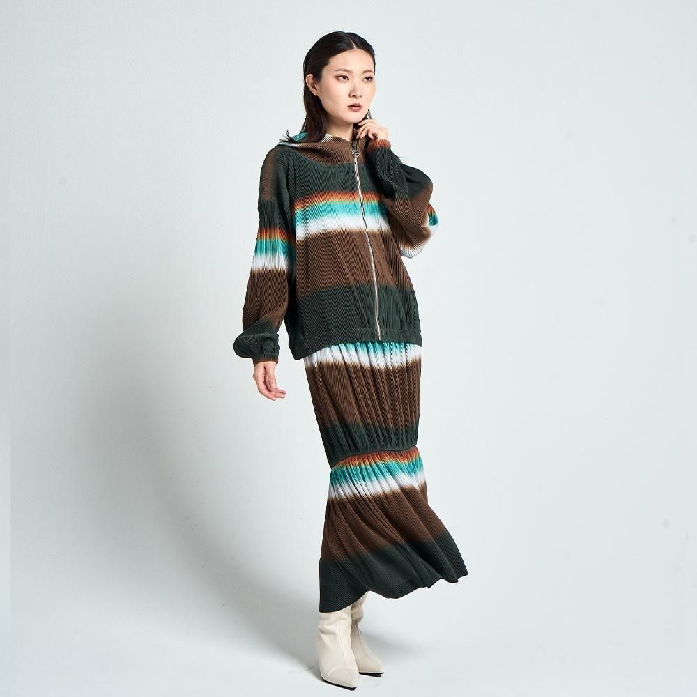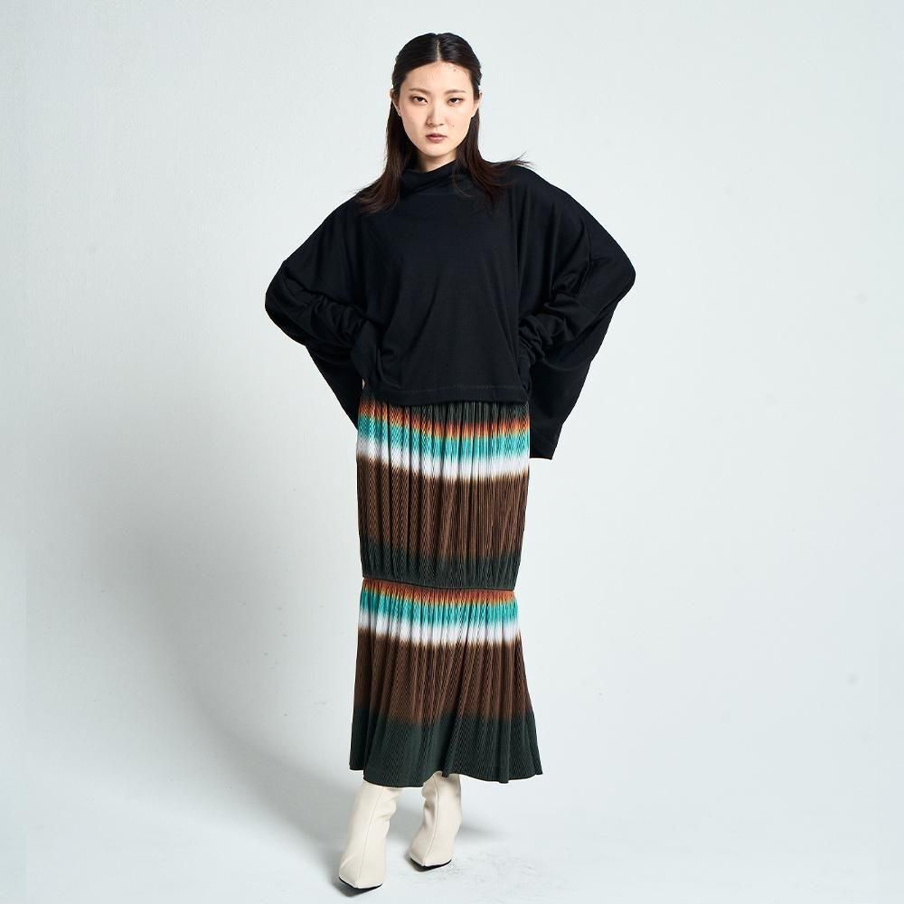NAOKI TAKIZAWAシルキープリーツボーダーSKIRT