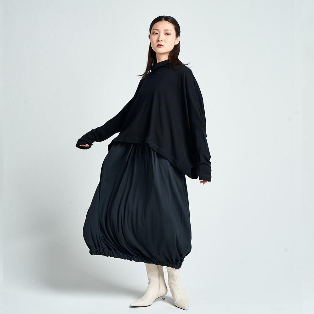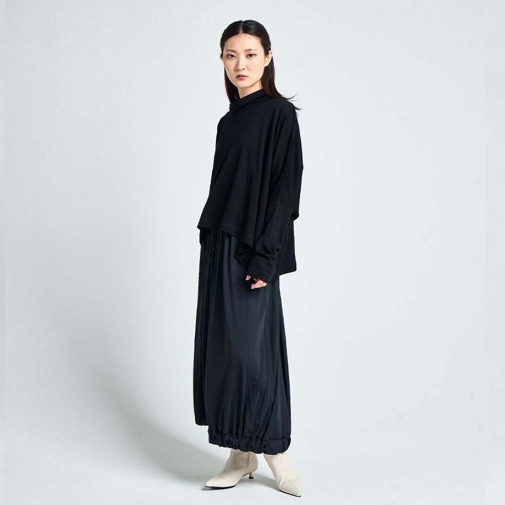 和紙のようにさらりとした風合いが魅力的なペーパージャージィで仕立てられたスカート。